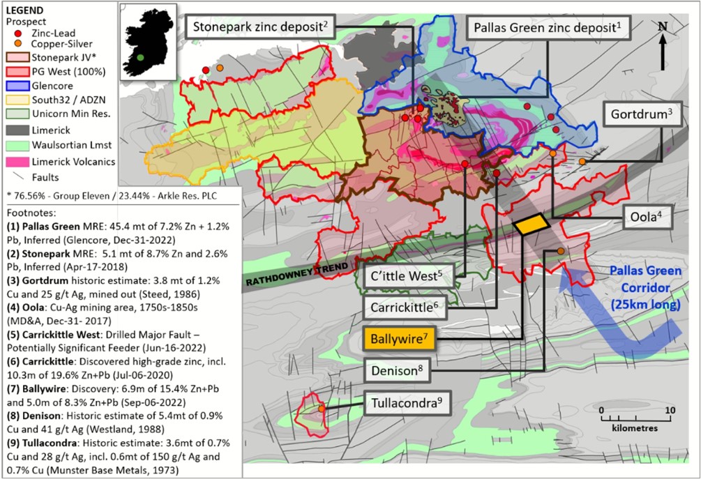 Group Eleven Resources Corp. (TSX.V: ZNG; OTCBB: GRLVF and FRA: 3GE) is a mineral exploration company focused on advanced stage zinc exploration in the Republic of Ireland. Group Eleven announced the Ballywire discovery in September 2022. Key intercepts to date include: