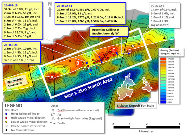 “Today’s other key development is the discovery of a significant new zone at the SW-end of the current discovery. Hole 25-468-19 intersected over 32m of mineralization, hosting four intervals, each nearly three metres thick, grading robust zinc-lead and silver. This new zone is 295m SSE of previously intersected high-grade mineralization, adding evidence of significant mineralization south of, and potentially parallel to, the current discovery trend. Follow-up drilling here is underway.”